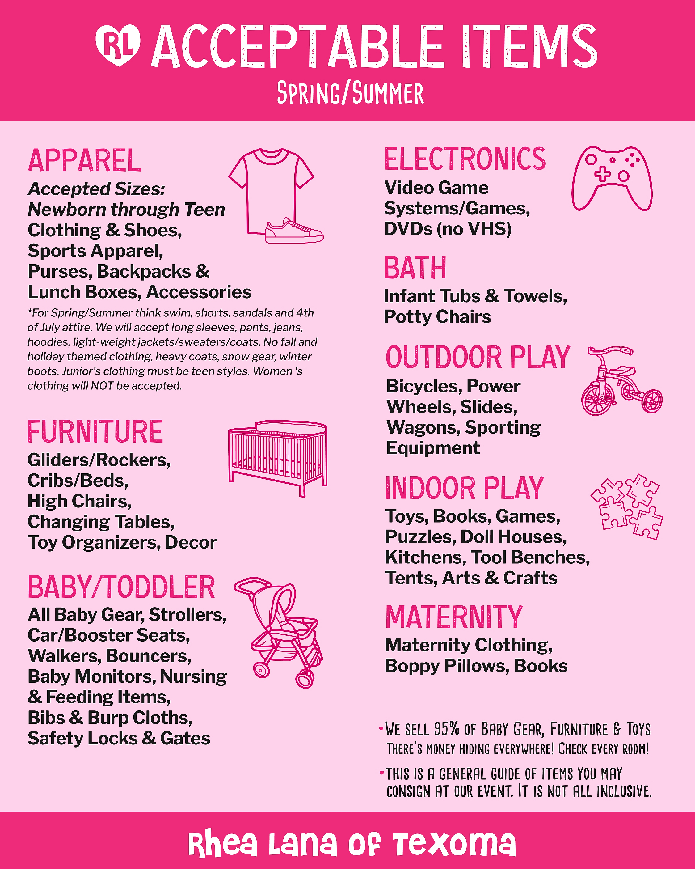 All-Star Consignors (those who donate & discount ALL items) may BUMP and shop 1 hour earlier at 11:00AM.